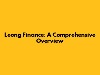 Hey guys! Today, we're diving deep into Leong Finance, a key player in the financial landscape. Understanding the ins and outs of financial institutions is super important, whether you're planning your investments, seeking loan options, or just trying to get a grip on the financial world. So, let's get started and explore what makes Leong Finance tick!