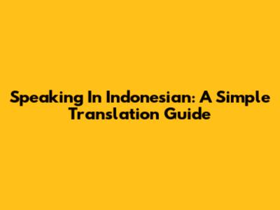 Speaking In Indonesian: A Simple Translation Guide