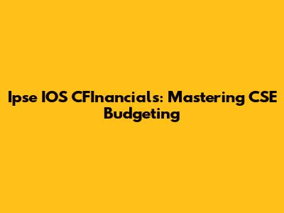 Ipse IOS CFInancials: Mastering CSE Budgeting