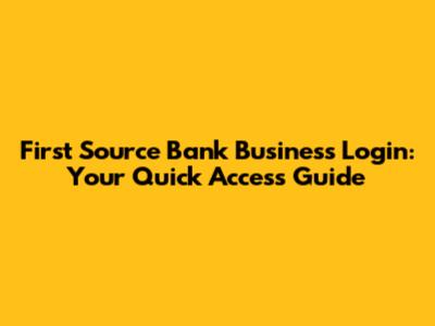 First Source Bank Business Login: Your Quick Access Guide