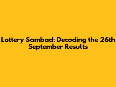 Lottery Sambad, for those of you who might be new to this, is a hugely popular lottery in India. It's a daily event, with draws taking place at different times throughout the day, bringing the thrill of the game to millions of people. The excitement is palpable as the numbers are announced. The anticipation, the hope, and the chance to change one's life – it's a unique experience. And while luck is certainly a major factor, understanding the patterns and analyzing the results can add another layer to the game. It’s like a puzzle, guys, and we’re here to help you solve it. We'll be breaking down the results, giving you a detailed look at what happened on September 26th, and hopefully, giving you some pointers for future plays. Ready to roll?