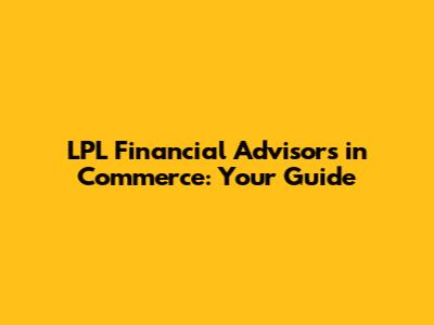 Hey everyone! If you're in Commerce and looking to get your finances in order, you've probably heard the name LPL Financial Advisors pop up. These guys are a big deal in the world of financial planning, and for good reason. They offer a ton of services designed to help you achieve your financial goals, whether that's saving for retirement, buying a house, or just making sure your money is working as hard as you are. Let's dive into what makes LPL Financial Advisors in Commerce a go-to choice for so many people and what you can expect when you partner with them.