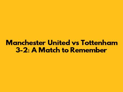 Hey guys! Let's dive deep into the electrifying match where Manchester United clashed with Tottenham, ending in a nail-biting 3-2 victory for the Red Devils. This game was a rollercoaster of emotions, showcasing some incredible football, stunning goals, and plenty of drama. We'll break down the key moments, analyze the performances of the players, and discuss the impact of this crucial win for Man Utd. It was a match that had everything, from moments of individual brilliance to tactical masterclasses. So, grab a snack, sit back, and let's dissect this epic encounter between two Premier League giants! This game was more than just a win; it was a statement. The energy in the stadium was palpable, with both sets of fans creating an atmosphere that amplified the intensity of the match. The players responded in kind, delivering a performance that will be etched in the memories of those who witnessed it. From the opening whistle, the tempo was high, with both teams eager to assert their dominance. The tactical battles, the individual duels, and the sheer passion on display made it a must-watch for any football enthusiast. We'll explore how Manchester United managed to secure the win, the strategic adjustments made by both managers, and the standout performances that defined this memorable match. This game was a testament to the unpredictable and thrilling nature of football, where fortunes can change in the blink of an eye. The ability of both teams to adapt and overcome challenges was evident throughout the match, making it a true spectacle for the fans. This game will be remembered as one of the most exciting encounters of the season, and it's a testament to the quality and competitiveness of the Premier League.