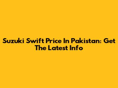 Suzuki Swift Price In Pakistan: Get The Latest Info