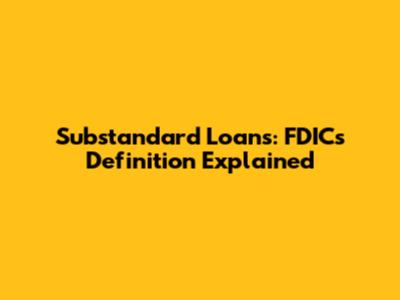 Substandard Loans: FDIC's Definition Explained