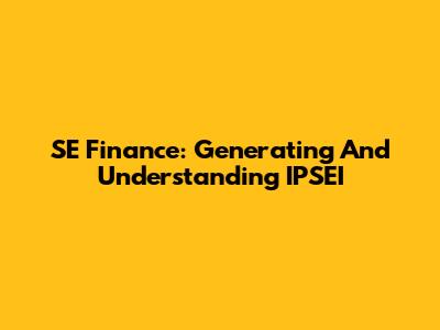 SE Finance: Generating And Understanding IPSEI