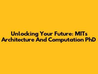 Unlocking Your Future: MIT's Architecture And Computation PhD