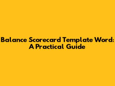 Balance Scorecard Template Word: A Practical Guide