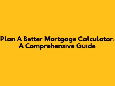 Plan A Better Mortgage Calculator: A Comprehensive Guide