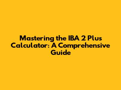 Tips and Tricks for Maximizing Your IBA 2 Plus Calculator