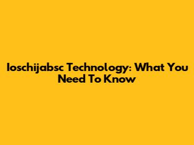 Ioschijabsc Technology: What You Need To Know