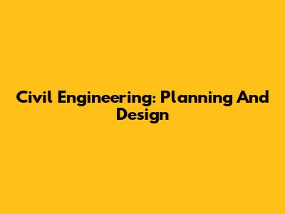 Civil Engineering: Planning And Design