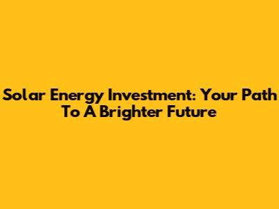 Solar Energy Investment: Your Path To A Brighter Future