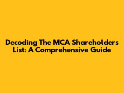 Decoding The MCA Shareholders List: A Comprehensive Guide