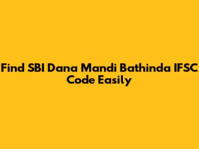 Find SBI Dana Mandi Bathinda IFSC Code Easily
