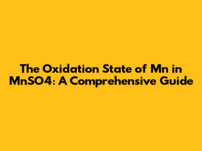 Manganese sulfate (MnSO4) is an inorganic compound with various applications, including uses in fertilizers, animal feed, and as a precursor to other manganese compounds. To determine the oxidation state of Mn in MnSO4, we need to understand its constituent ions. MnSO4 is composed of the manganese cation (Mn) and the sulfate anion (SO4).