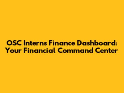 OSC Intern's Finance Dashboard: Your Financial Command Center
