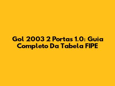 Gol 2003 2 Portas 1.0: Guia Completo Da Tabela FIPE