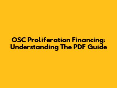 OSC Proliferation Financing: Understanding The PDF Guide