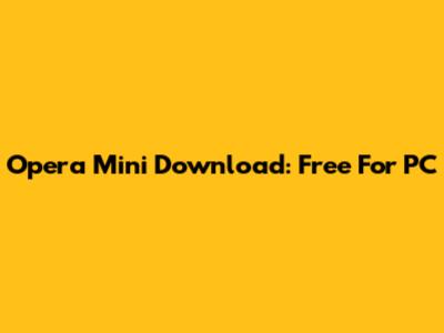 Opera Mini Download: Free For PC