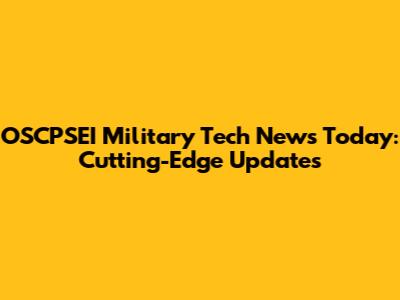 OSCPSEI Military Tech News Today: Cutting-Edge Updates