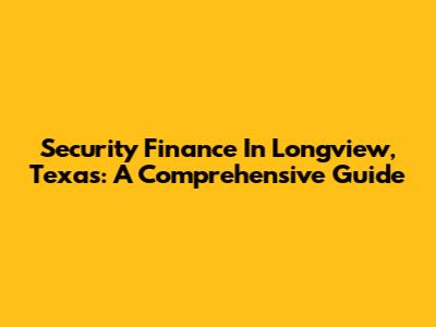 Security Finance In Longview, Texas: A Comprehensive Guide