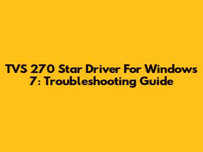 TVS 270 Star Driver For Windows 7: Troubleshooting Guide
