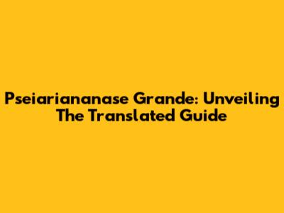 Pseiariananase Grande: Unveiling The Translated Guide