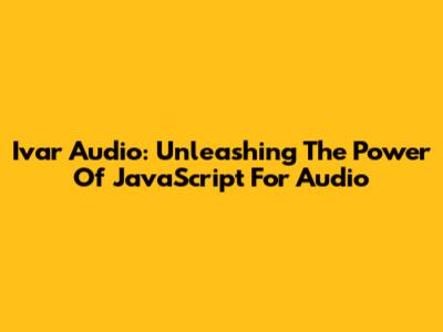 Ivar Audio: Unleashing The Power Of JavaScript For Audio