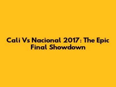 Cali Vs Nacional 2017: The Epic Final Showdown