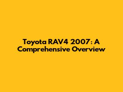 Toyota RAV4 2007: A Comprehensive Overview
