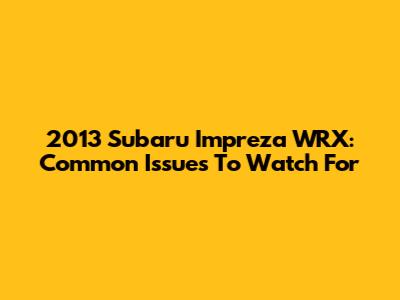 2013 Subaru Impreza WRX: Common Issues To Watch For