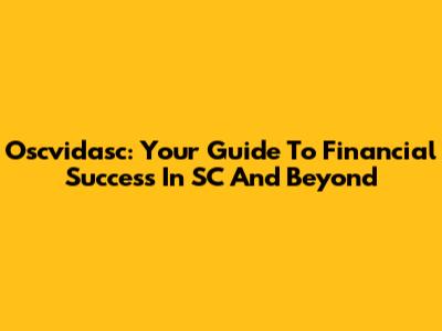 Oscvidasc: Your Guide To Financial Success In SC And Beyond