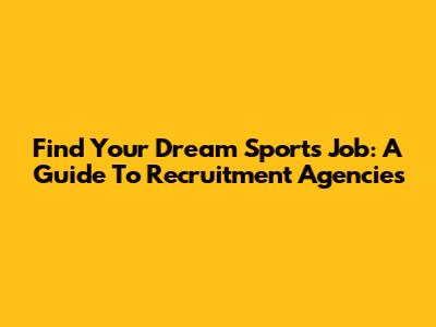 Find Your Dream Sports Job: A Guide To Recruitment Agencies