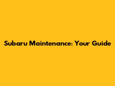 Subaru Maintenance: Your Guide
