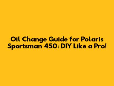 Hey there, fellow ATV enthusiasts! If you're riding a Polaris Sportsman 450, you know how crucial regular maintenance is for keeping your beast running smoothly. One of the most important aspects of that maintenance is the oil change. Don't worry; it's not as scary as it sounds! This guide will walk you through the entire process, making you feel confident enough to DIY your next oil change like a pro. We'll cover everything from the tools you'll need to the step-by-step instructions. Ready to get your hands dirty and keep your Sportsman 450 in top shape? Let's dive in!