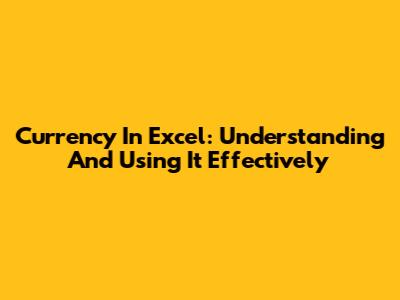 Currency In Excel: Understanding And Using It Effectively