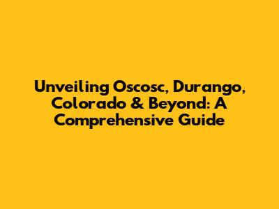 Unveiling Oscosc, Durango, Colorado & Beyond: A Comprehensive Guide