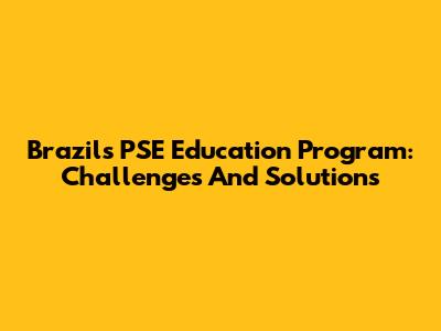 Brazil's PSE Education Program: Challenges And Solutions