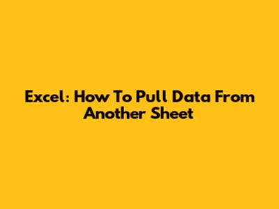 Excel: How To Pull Data From Another Sheet