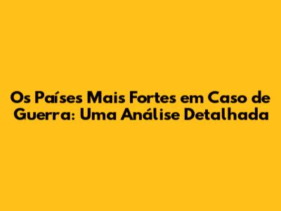 Este artigo oferece uma visão geral dos principais países e dos fatores que determinam a força militar. É fundamental continuar acompanhando os desenvolvimentos no campo militar para entender as mudanças no cenário geopolítico global.