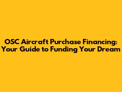 Understanding OSC Aircraft Purchase Financing Options