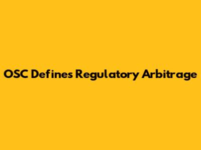 Why the OSC Focuses on Regulatory Arbitrage