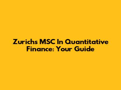 Zurich's MSC In Quantitative Finance: Your Guide