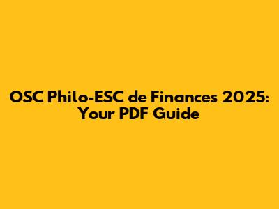 Where to Find the OSC Philo-ESC de Finances 2025 PDF