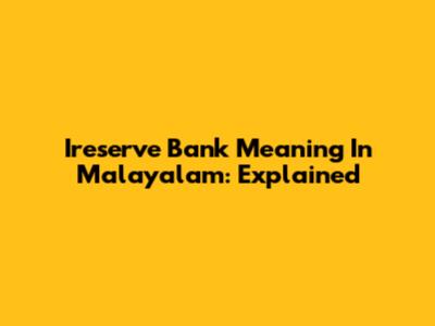 Ireserve Bank Meaning In Malayalam: Explained