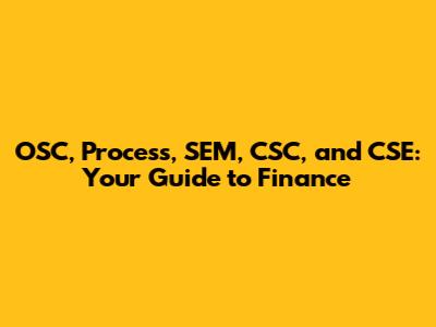 Hey finance enthusiasts! Ever heard of OSC, Process, SEM, CSC, and CSE and scratched your head? Don't sweat it, because we're about to dive deep into these acronyms and how they rock the world of finance. We'll break down what each one means, how they work, and why they're super important. So, buckle up, because this is going to be an awesome ride through the financial landscape! This article is designed to be your go-to guide, offering clarity and insights into how these elements work together. Let's get started. OSC, Process, SEM, CSC, and CSE are all integral components in financial operations, each playing a unique role in shaping how businesses manage their finances, make decisions, and stay competitive. From optimizing organizational structures to analyzing market trends and ensuring smooth customer service, understanding these terms is crucial for anyone looking to make a mark in the financial sector. We'll explore how these concepts can be applied in real-world scenarios, giving you a practical understanding you can use. Understanding these terms will not only boost your financial acumen but also provide you with a more holistic view of the financial world. Whether you are a student, a professional, or simply curious about finance, this guide will provide you with the knowledge and confidence to navigate the complexities of financial operations. This is all about breaking down complex topics in a way that's easy to grasp, so you can walk away with a solid understanding of how these different elements affect businesses and the financial world at large. Let's unlock the secrets of OSC, Process, SEM, CSC, and CSE together.