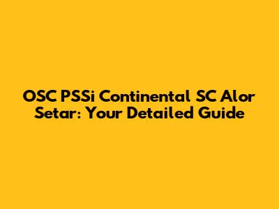Hey everyone! Today, we're diving deep into the OSC PSSi Continental SC scene in Alor Setar. If you're scratching your head wondering what that even is, don't worry – we're going to break it down. Whether you're a seasoned pro, just starting out, or a curious local, this guide is packed with all the info you need. We'll explore everything from what the OSC PSSi Continental SC is, the services they offer, and why it matters in Alor Setar. So, grab a coffee (or teh tarik, if you're in the mood!), and let's get started!