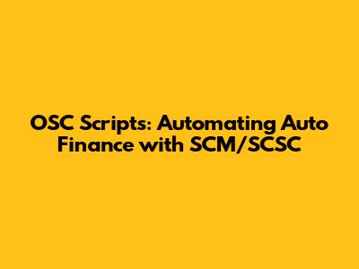 Hey guys! Let's dive into the world of OSC Scripts and how they're revolutionizing the auto finance industry, especially when paired with SCM/SCSC systems. We're talking about automating processes, streamlining workflows, and ultimately, making everything run smoother. Trust me, it's a game-changer! This guide will break down the ins and outs, so you can understand how these scripts work, what they do, and why they're becoming so essential. If you're involved in auto finance, or even just curious about how tech is changing things, you're in the right place. We'll cover everything from the basics to some more advanced applications, keeping it easy to understand. Ready to explore how OSC scripts are taking auto finance to the next level? Let's go!