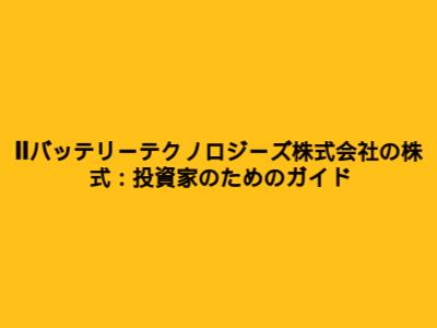 IIバッテリーテクノロジーズ株式会社の株式:投資家のためのガイド